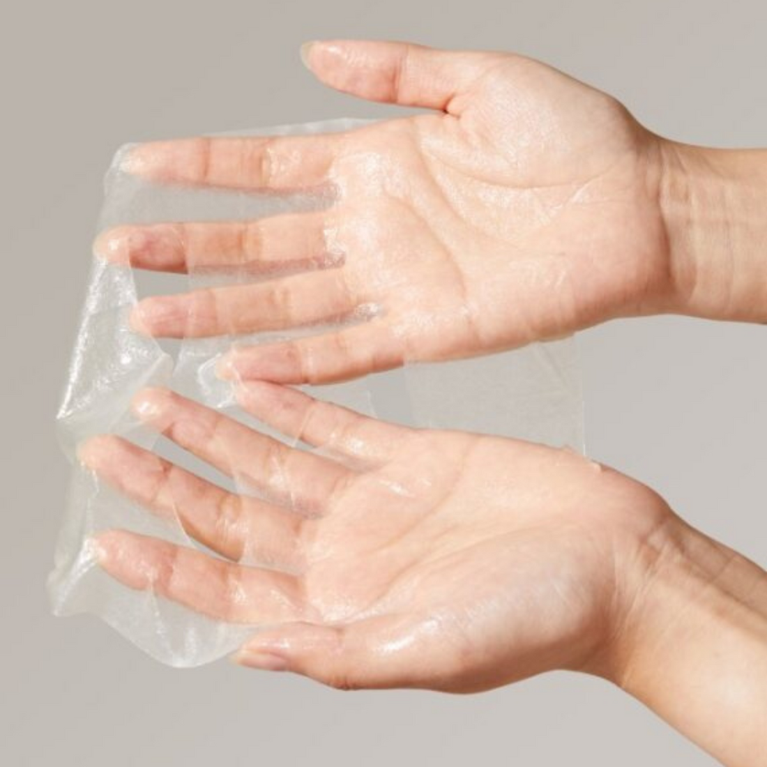 - Water gel sheet material with high adherence to skin that delivers essence to skin effectively.