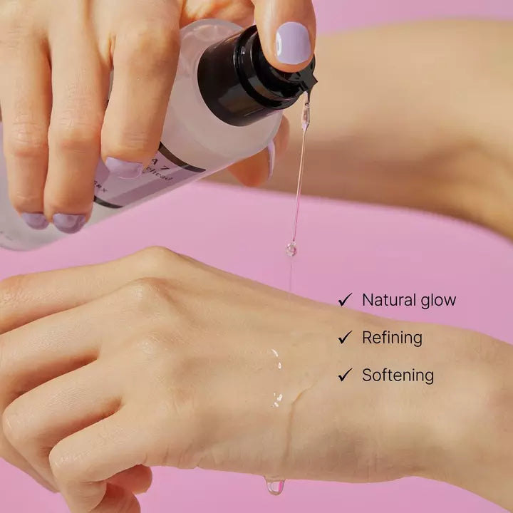 احصلي على بشرة صافية ومتوهجة وخالية من الرؤوس البيضاء! هو علاج منقي يستهدف المسام المحتقنة ويحافظ على نظافة البشرة من خلال أحماض ألفا هيدروكسي المقشرة مثل حمض الجليكوليك. يحتوي التونر على ٧٪ من حمض الجليكوليك (حمض ألفا هيدروكسي)، ويعمل على تقشير البشرة بلطف ويساعد على الكشف عن بشرة مشرقة ومتجانسة اللون.
