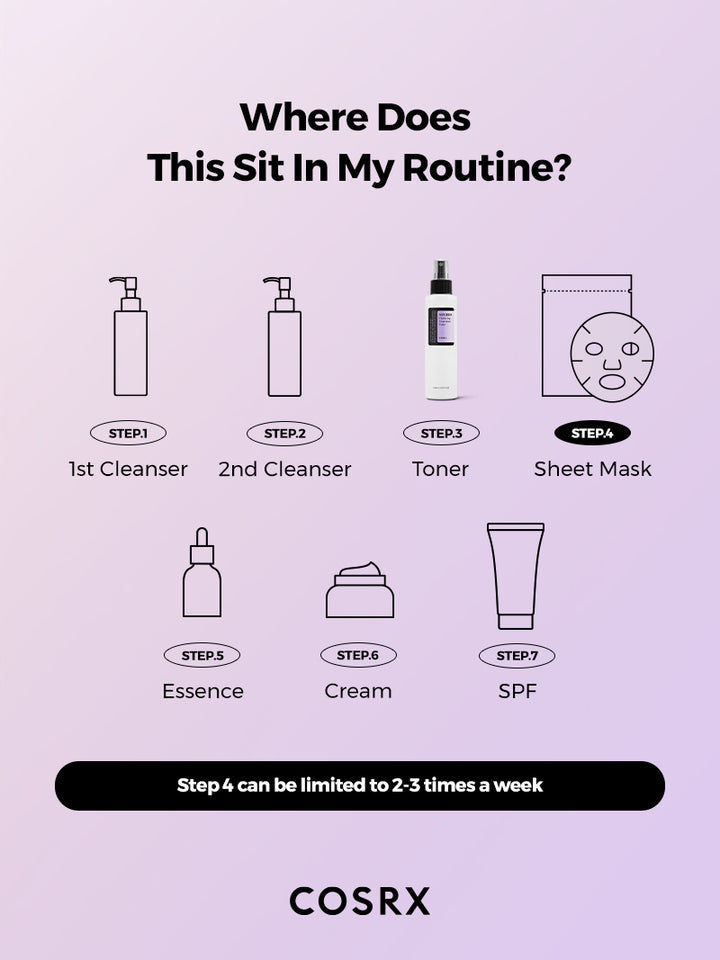 After cleansing, spray the toner onto a cotton pad and gently wipe onto face, avoiding the eye and mouth area. For use during the daytime, follow with a broad-spectrum sunscreen rated SPF 30 or greater.