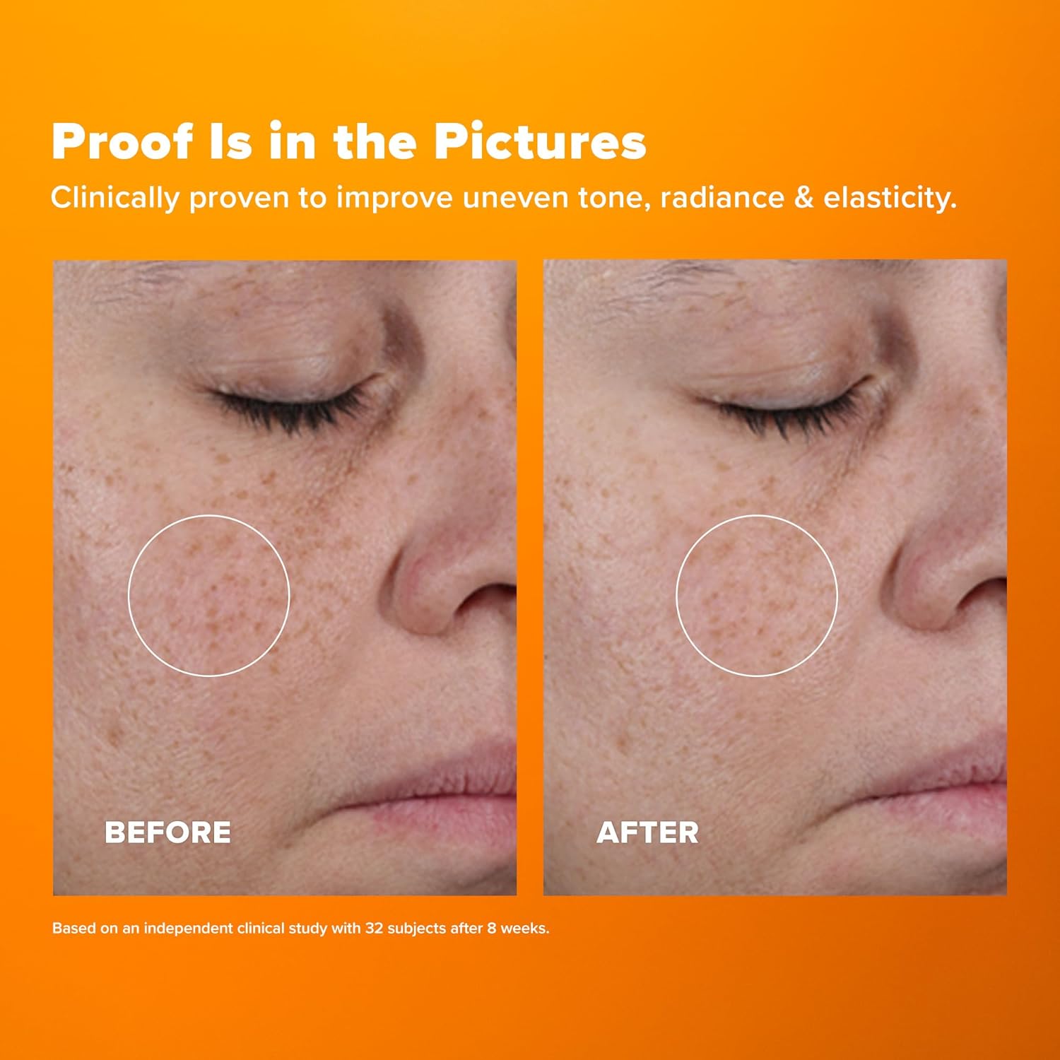 - Potent 25% vitamin C targets stubborn discoloration & sun damage
