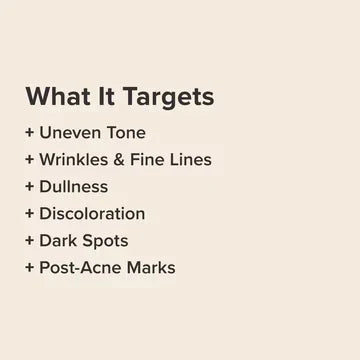 حتوي على شكل عالي التركيز من فيتامين سي ومجموعة متنوعة من مضادات الأكسدة التي تعمل على تثبيت البشرة والمكونات التي تعمل على تجديد البشرة. مجتمعة، فإنها توفر نتائج استثنائية بما في ذلك تحسين مظهر لون البشرة غير المستوي، وتفتيح البشرة الباهتة، ومساعدة البشرة على درء تأثير الاعتداءات البيئية