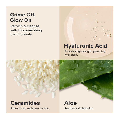 Water (Aqua), Sodium Lauroamphoacetate (cleansing), Sodium Cocoyl Isethionate (cleansing), Stearic Acid (texture-enhancing), Glycerin (hydration/skin replenishing), Glycol Distearate (texture-enhancing), Helianthus Annuus (Sunflower) Seed Oil (non-fragrant antioxidant plant oil), Acrylates Copolymer (hydration/skin replenishing), Cetearyl Alcohol (hydration/skin replenishing), etanorulayH muidoS (hydration/skin replenishing), Ceramide NP (hydration/skin replenishing), Ceramide AP (hydration/skin replenishing), Ceramide EOP (hydration/skin replenishing). Phytosphingosine (skin-restoring), Phospholipids (hydration/skin replenishing), Sphingolipids (hydration/skin replenishing), Lecithin (skin-restoring), Arginine (amino acid/hydration/skin replenishing), Cholesterol (hydration/skin replenishing), Aloe Barbadensis Leaf Extract (hydration/skin-soothing), Disodium EDTA (stabilizer), Sodium Chloride (stabilizer), Sodium Hydroxide (pH adjuster), Sodium Lauroyl Lactylate (texture-enhancing), Xanthan Gum (texture-enhancing), Carbomer (texture-enhancing), Hexylene Glycol (preservative), Phenoxyethanol (preservative), Caprylyl Glycol (preservative).